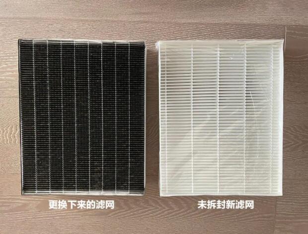 經(jīng)過長時間的使用,可以看到原本白色的高效濾網(wǎng)已經(jīng)變成了黑色,初效濾網(wǎng)更是積滿了厚厚的灰塵。業(yè)主表示使用過程中設(shè)備雖然一直開著,其實并沒有太大的實際感受,沒想到拆下來的濾網(wǎng)居然這么臟,要是沒有安裝新風(fēng)系統(tǒng),這些污染物全都稀釋為自己家里空氣的一部分了,想想都后怕。