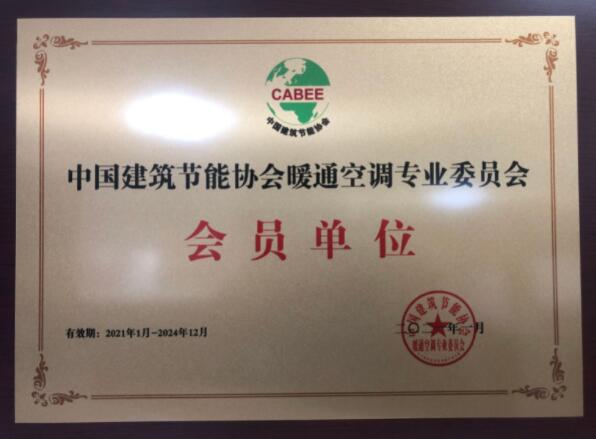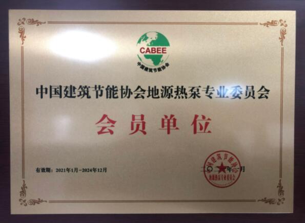 2021年1月,嘉洋機電榮獲中國建筑節能協會"暖通空調專業委員會會員單位”和"中國建筑節能協會地緣熱泵專業委員會會員單位”
