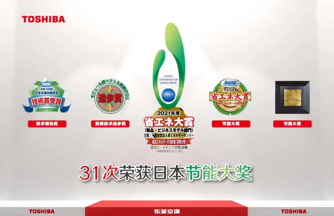 日本節能中心頒發的ECCJ日本節能大獎創辦于1990年,致力于全方位地推動節能事業的發展,在日本享有極高聲譽,是當前大型項目集采、普通消費者日常選購家電產品時的重要參考依據。東芝空調始終秉持著節能高效的理念,為用戶帶來更舒適、更節能、更安全的產品,已累計31次榮獲日本節能大獎。