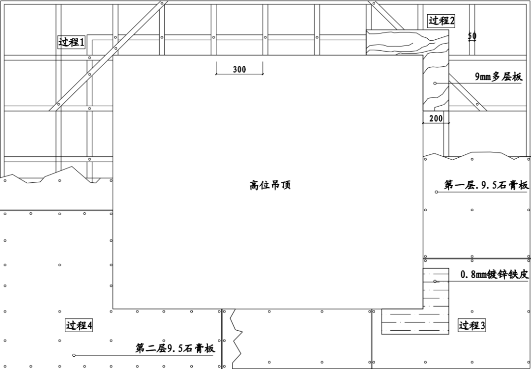 說明:空調(diào)回風(fēng)口、出風(fēng)口、換氣扇等處要求設(shè)置木邊框,以便于風(fēng)口及設(shè)施安裝。