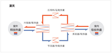 夏天的時候,室內機吸收室內熱量帶到室外釋放。