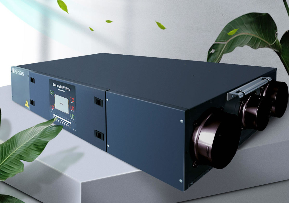 雙向流新風系統為強制排風、強制送風,在雙向流系統的設計中排風主機與室內排風口的位置與單向流分布基本一致,不同的是雙向流系統中的新風是由新風主機送入。新風主機通過管道與室內的空氣分布器相連接,新風主機不斷的把室外新風通過管道送入室內,以滿足人們日常生活所需新鮮、有質量的空氣。排風口與新風口都帶有風量調節閥,通過主機的動力排與送來實現室內通風換氣。